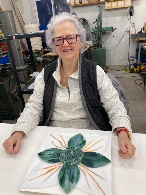 “Kathy’s workshops are so much fun…..and you get to keep the beautiful results! I have made serving dishes, Christmas wreathes, trees, lanterns, decorations for friends and plant holders. Kathy provides the equipment, glass and expertise. By the end of an afternoon, you have a piece of art to take home. The best part, it takes little artistic talent! I liken it to kindergarten for adults!”
