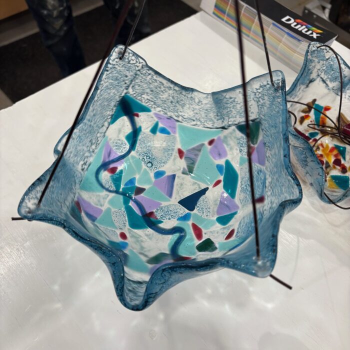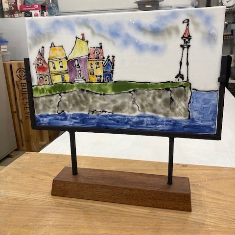 Samples of our Work Dream Catcher Dish Light Art Bowl Dream Catcher Plant Hanger Candle Holder Driftwood Light Garden Art Garden Art Address Plate Candle Holder glass flower Robbie Burns plaid dish night light Photo transfer Christmas Ornaments Cheese board Serving bowl Wall sconce Plant Markers Student Creations Enamels and slurries wereused to create this East Coast scene Christmas tree - before being fired Broken glass was used to create this sparkling Christmas tree Hanging planter - Before being fired Hanging planter - finished product