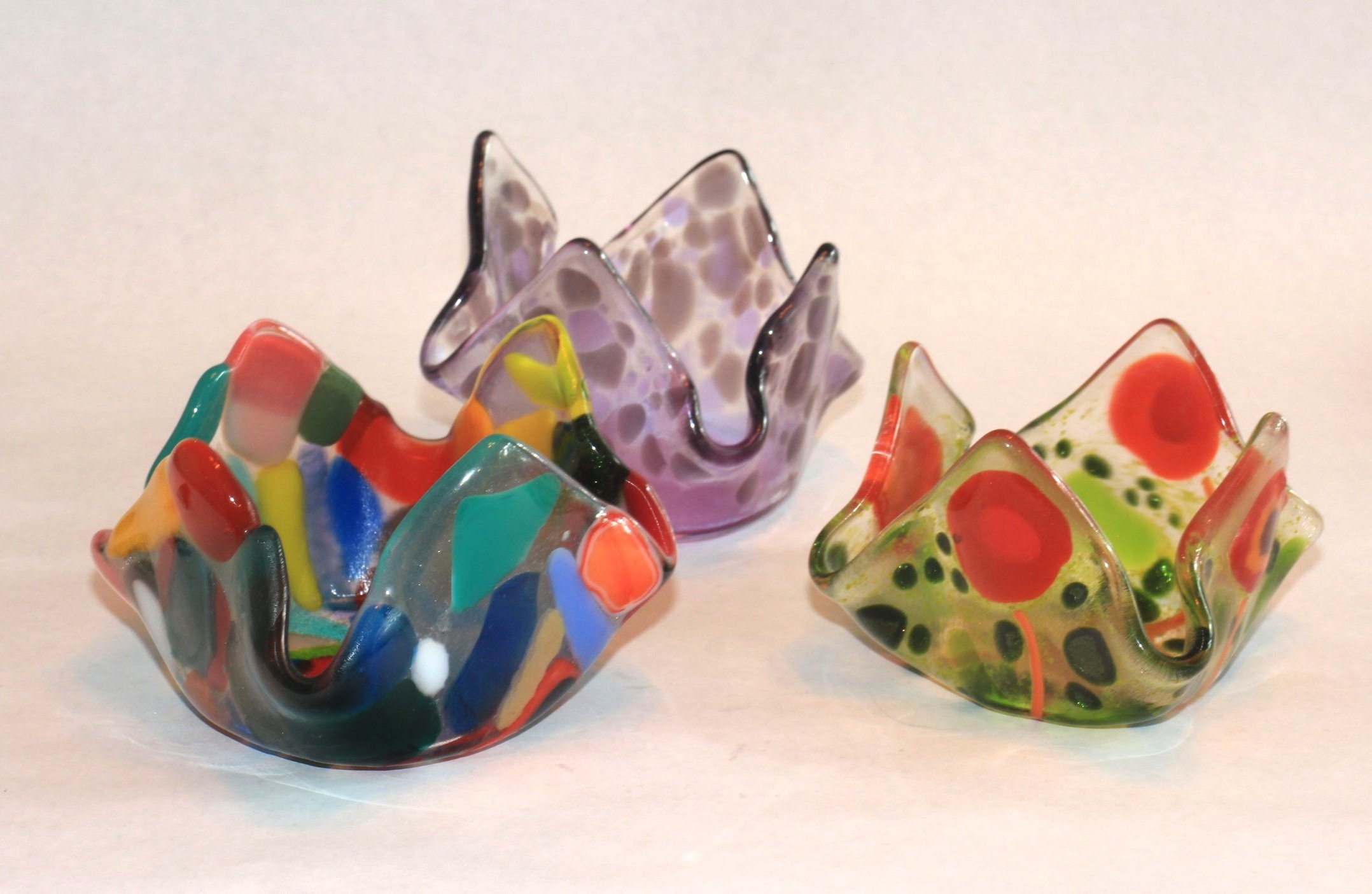 You will learn about the various forms and properties of fusible glass as well as how to use the tools and equipment to create 3 different fused glass creations using 3 different techniques.