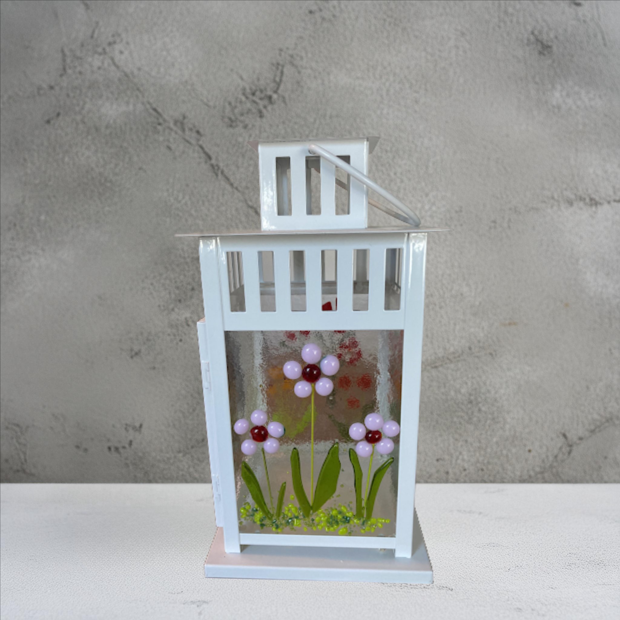 Paint on enamels or embellish with glass on 4 separate glass panels. The choices are unlimited.