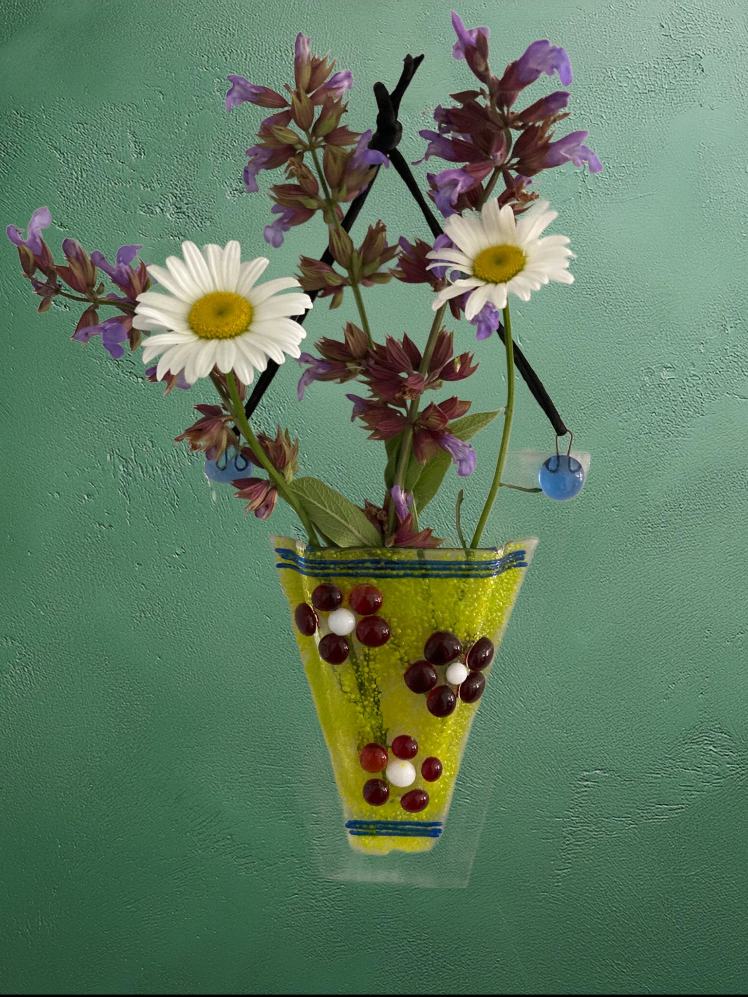 This 6” pocket vase can be filled with water and displayed in your window. Choose from a variety of styles and colours.